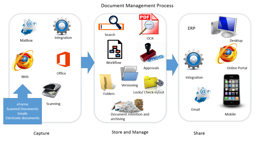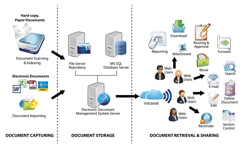 Using EDMS for record management by integrating scanning and Optical Character Recognition (OCR) technologies provides an end to end solution by collecting paper documents and transforming them into accurate, retrievable information and delivering the content into an organization’s business applications.